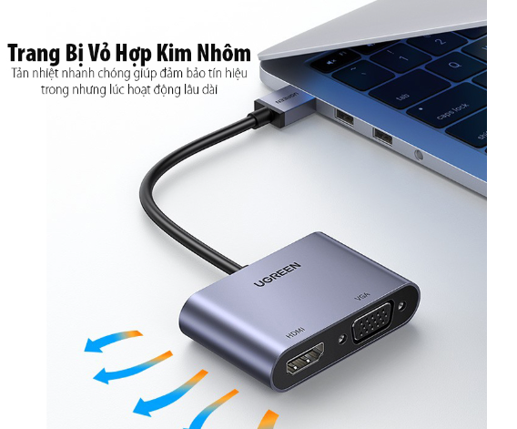 - Cáp chuyển USB A sang HDMI/ VGA Ugreen 20518 là phụ kiện giúp bạn kết nối PC/ Laptop có cổng USB-A của bạn với màn hình, máy chiếu, TV qua cổng kết nối HDMI và VGA. Hỗ trợ độ phân giải cổng HDMI và VGA là FullHD 1920*1080@60Hz, giải pháp lý tưởng cho các nhu cầu làm việc, học tập, giải trí…
