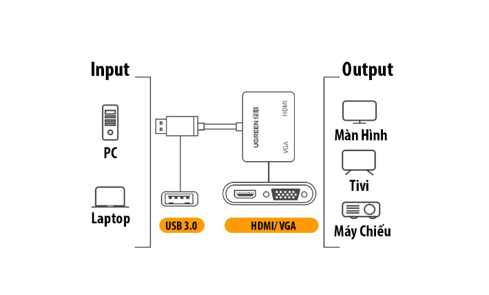 - Tính năng: Chuyển đổi tín hiệu USB A sang HDMI/ VGA