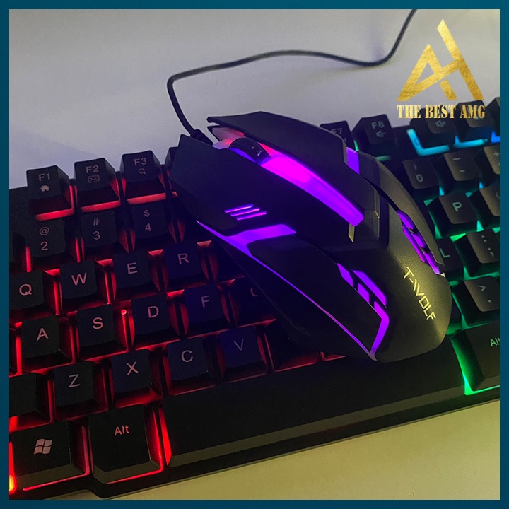Combo Bàn Phím Chuột Có Dây Gaming Giả Cơ Led Rgb T-WOLF TF200 Keycap Xuyên Led Máy Tính Laptop Keyboard Chơi Game