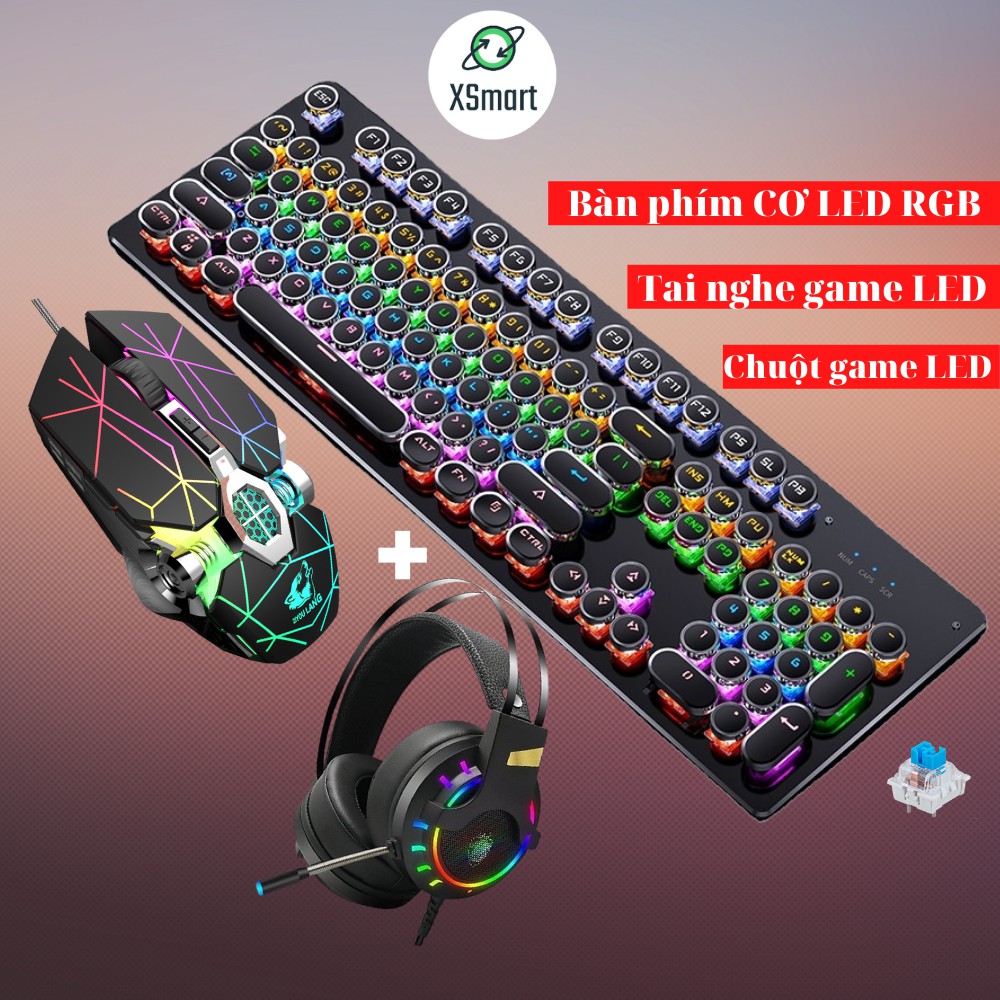 Giới thiệu COMBO bàn phím cơ kèm chuột và tai nghe chụp tai headphone gaming LED RGB chơi game đổi màu siêu đẹp T907+V8 tia sét+K3