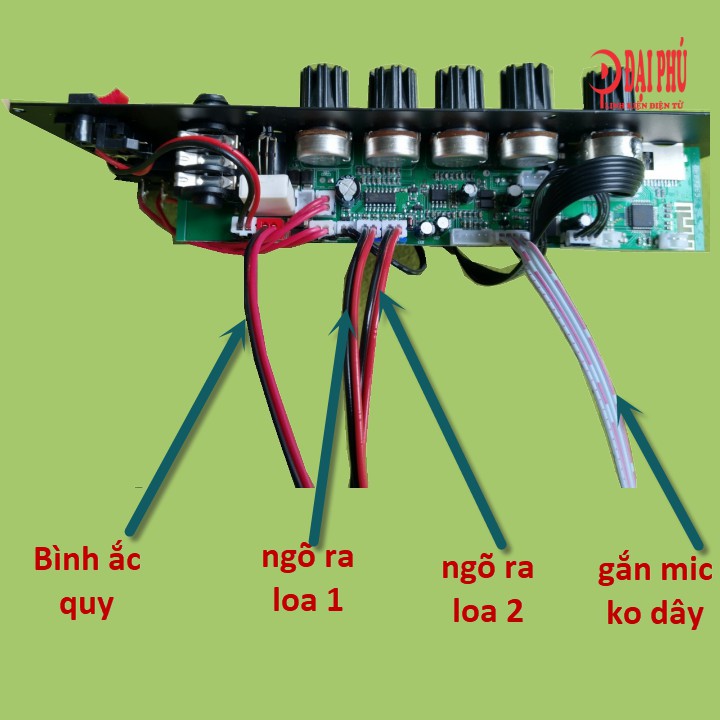 Mạch loa kéo Đại Phú giới thiệu mẫu loa kéo độc đáo thế hệ mới năm 2021. Những điểm nổi bật của mẫu mạch: Sử dụng Bluetooth DSP có nhiều hiệu ứng tiện ích. Mạch ngõ ra 2 kênh riêng biệt phù hợp cho thùng loa kéo đôi 2 tấc – 2.5 tấc. Mạch lắp được Micro không dây. Sử dụng bình ắc qui 12V và có tích hợp sạc bình tự ngắt điều bắt buộc cho loa kéo di động
